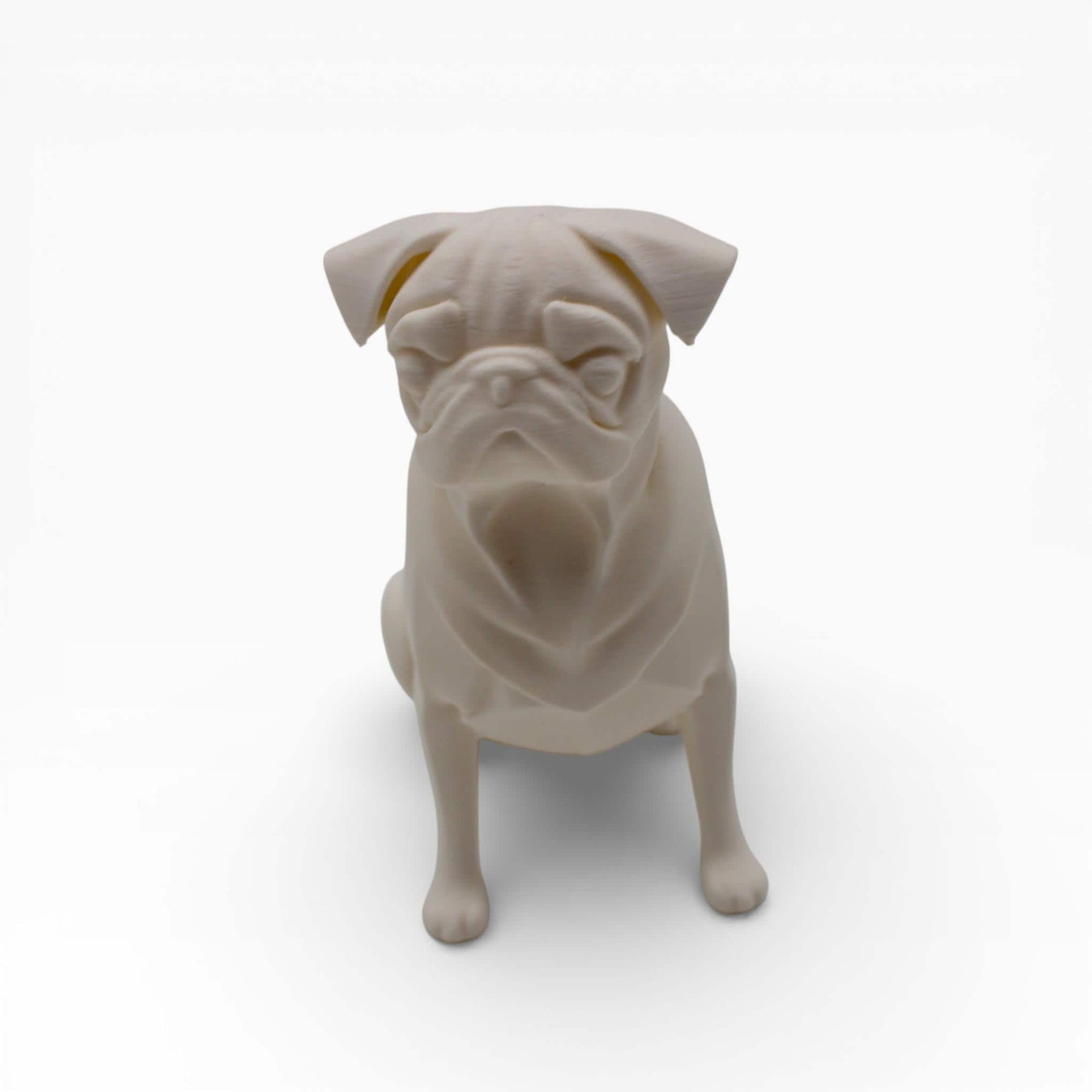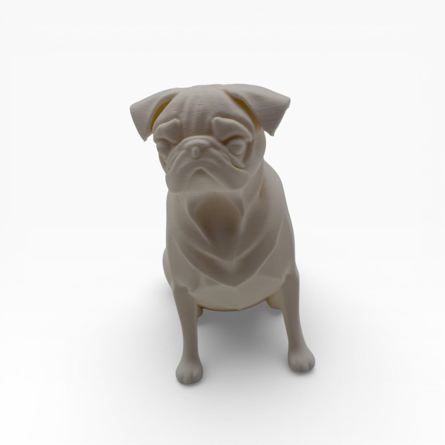 Capture the unmistakable charm of the pug in a sleek, modern Pug Sculpture. Known for their big personalities and even bigger hearts, this sculpture distills the essence of the breed into a refined piece of art. It brings together the adorable wrinkles, the soulful gaze, and that proud, chest-out stance in a way that feels sophisticated rather than cartoonish. REFINED CHARACTER. "The Pug" is designed with a minimalist approach. Instead of complex fur textures, it uses smooth lines and subtle geometry to highlight the iconic folds of the face and neck. The result is a silhouette that is instantly recognizable to any dog lover, yet stylish enough for a modern living room or executive desk. THE PERFECT COMPANION. Whether you are honoring a beloved pet or simply love the breed, this statue offers all the cuteness with none of the shedding. It sits perfectly on a bookshelf, a bedside table, or as a guardian of your workspace. 📏 SIZING: Standard Dimensions (Actual): 100 mm x 96 mm x 53.5 mm. Maximum Scalable Dimensions (Available on Request): 200 mm x 192 mm x 107 mm. 📦 WHAT IS INCLUDED? 1x Minimalist Pug Sculpture.
