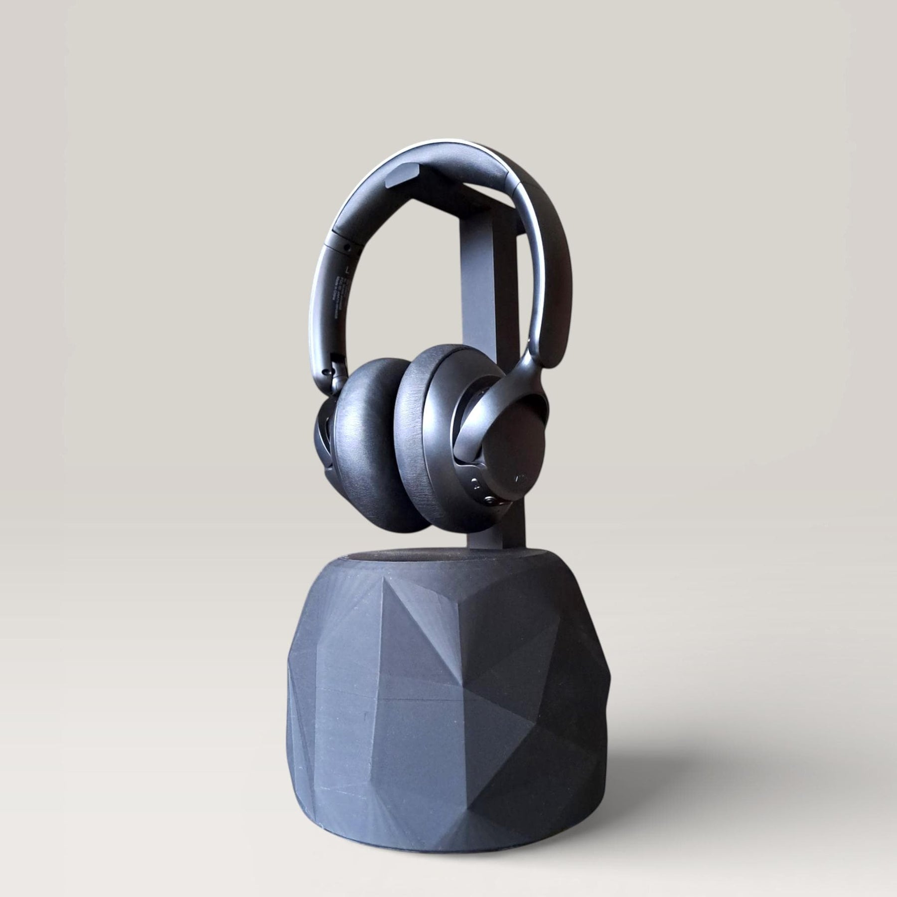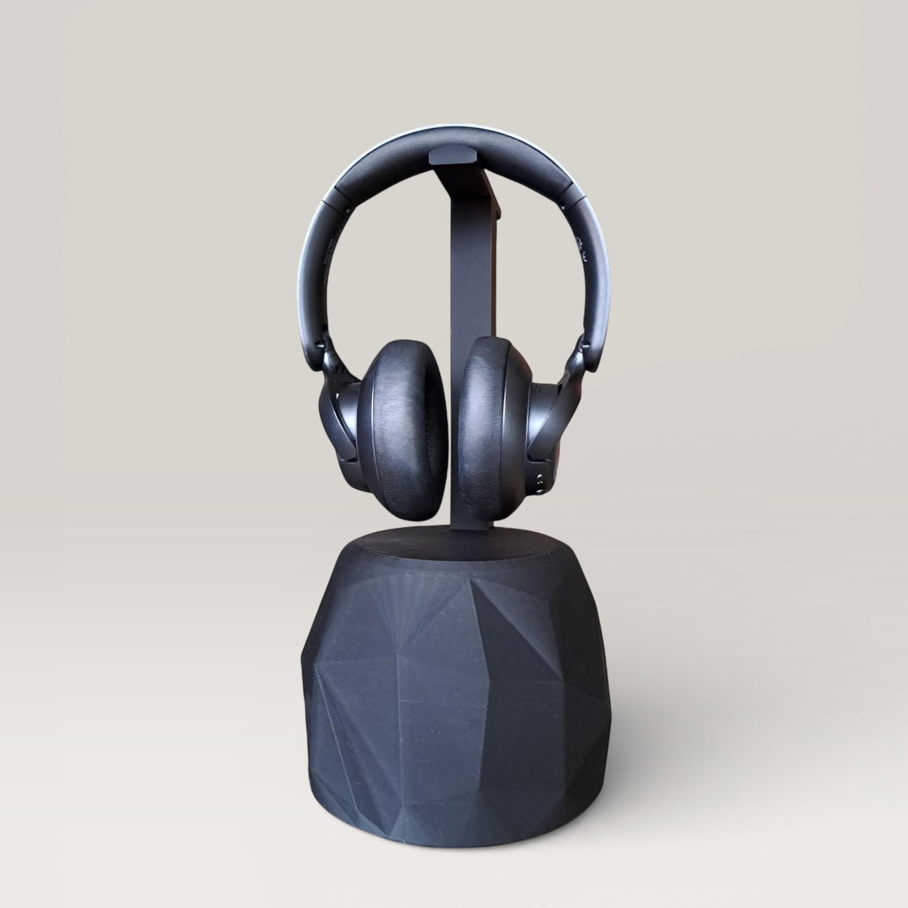 ✨ ANCHOR YOUR BATTLE STATION. Stop hunting for your headphones under piles of cables. This Geometric Headphone Stand is the ultimate upgrade for your desk. Merging modern low-poly art with smart engineering, it serves as both a secure home for your gear and a striking piece of sculpture.